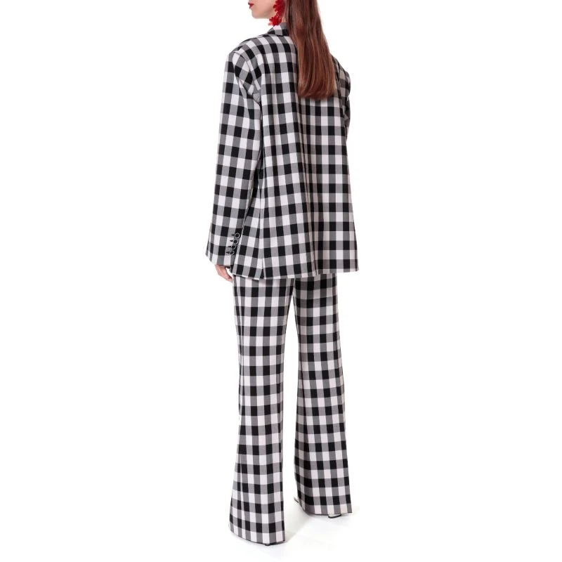 Strongly oversized blazer in black and white checked. Voluminous sleeves, a rounded bottom of the front of the blazer and a clearly extended shoulder line give the jacket a unique urban style.